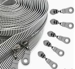> Premium #5 Nylon Coil Zipper Tape - With 10 Sliders (5.4 Yards) - Black and White Strip - Gunmetal Teeth